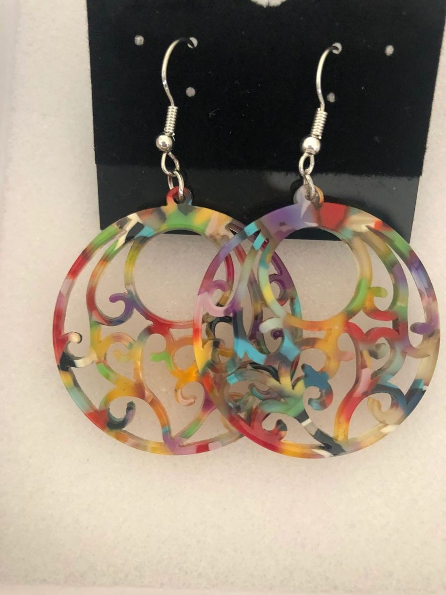 Multi-Color Filigree Disc Pendant Earrings